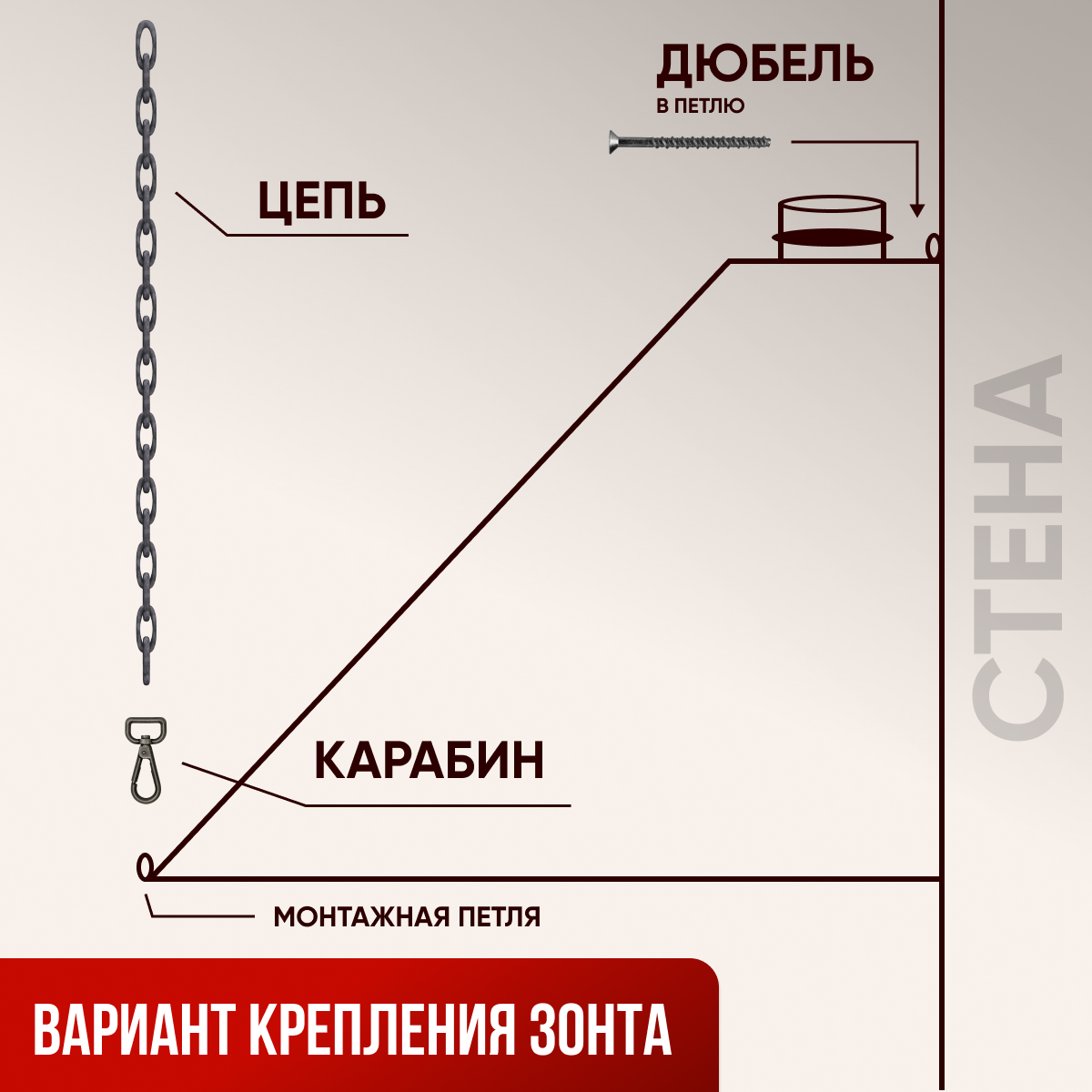 Крепеж зонтов на цепи либо шпильку