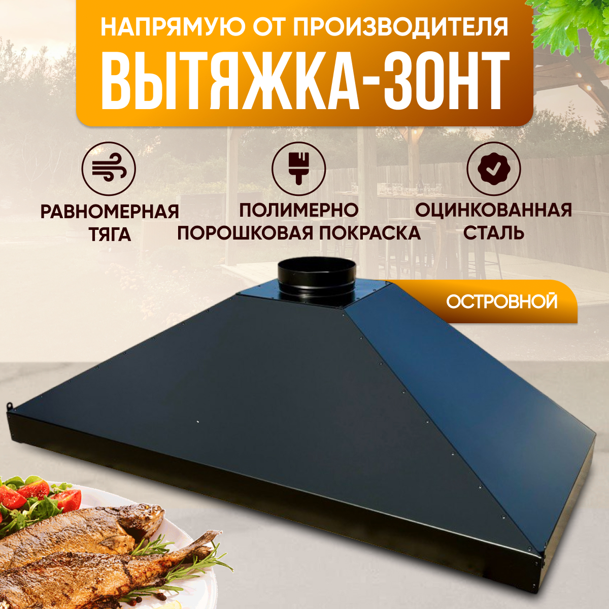 Мы предлагаем стильный и минималистичный дизайн вытяжек для беседки, дачи, терассы